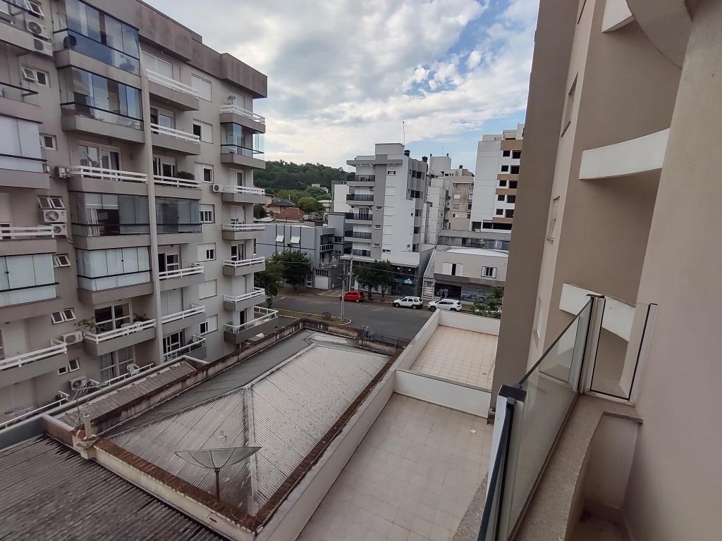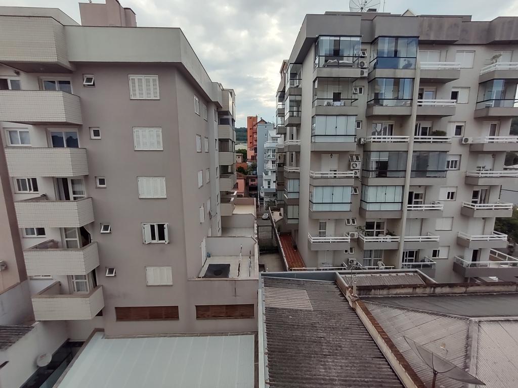 Apartamento no Centro de Nova Prata, com dois dormitórios, sendo um suíte, uma vaga de estacionamento e sacada com churrasqueira.