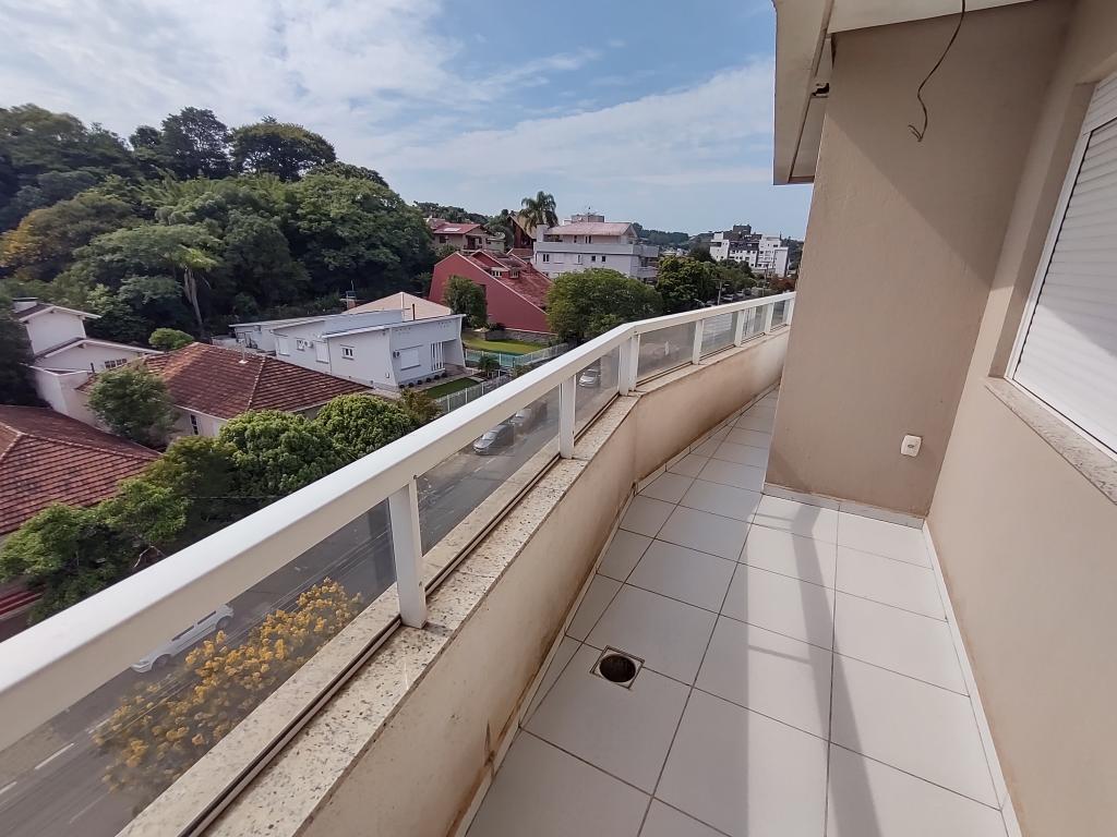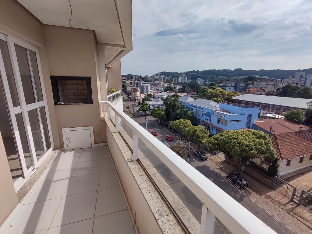 Apartamento com três dormitórios, sendo um suíte, no centro de Nova Prata, ampla sacada de frente, com churrasqueira e duas vagas de garagem.