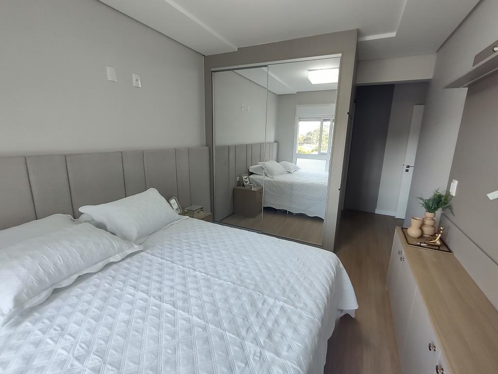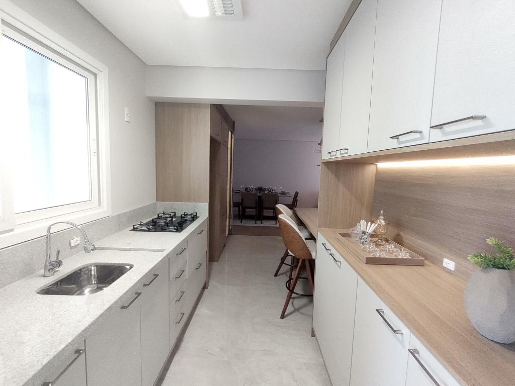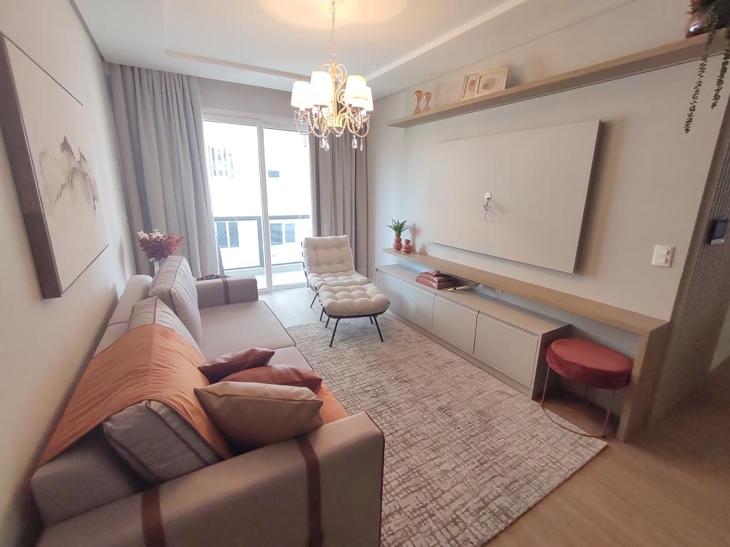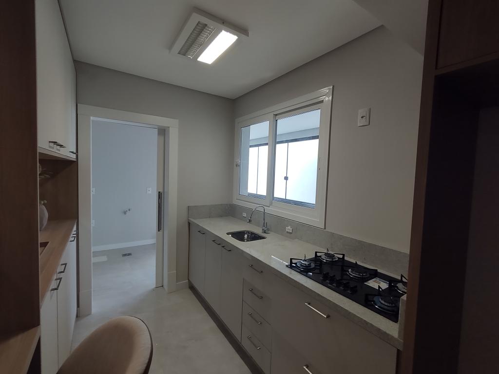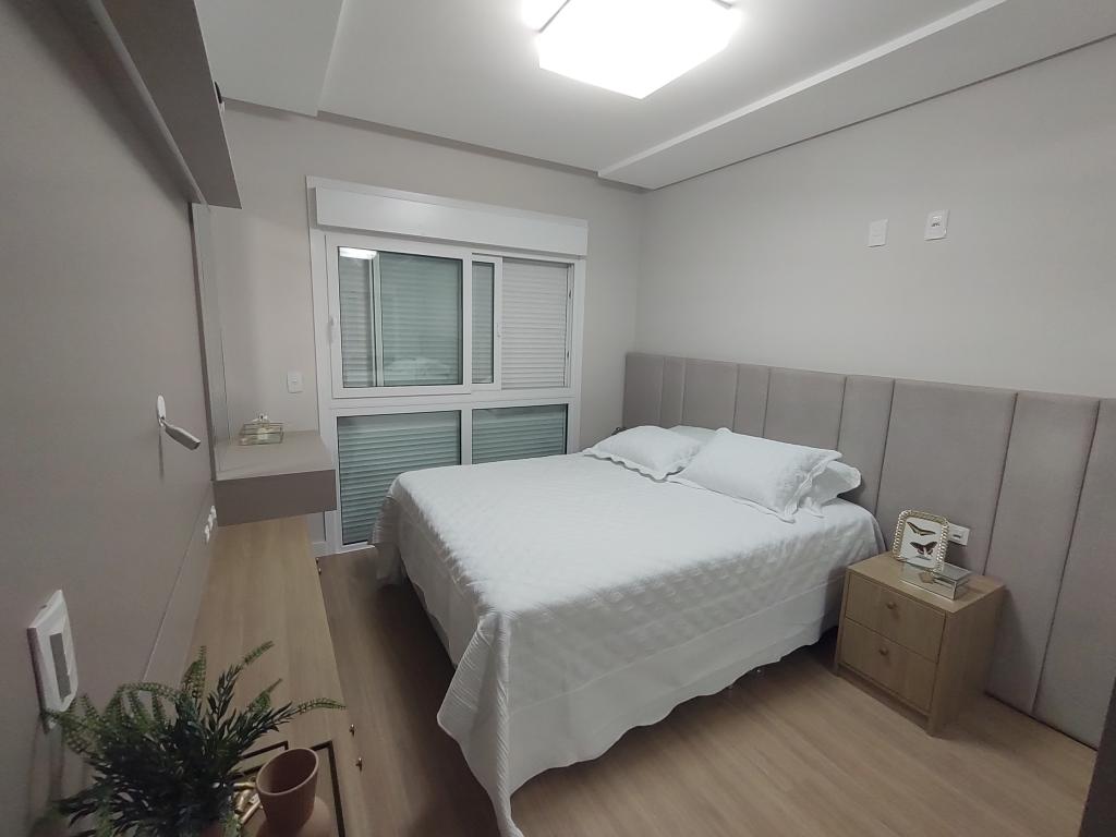 São três dormitórios, sendo um deles suíte, cozinha, lavanderia, sala de estar/jantar, duas varandas, uma com churrasqueira e box duplo.