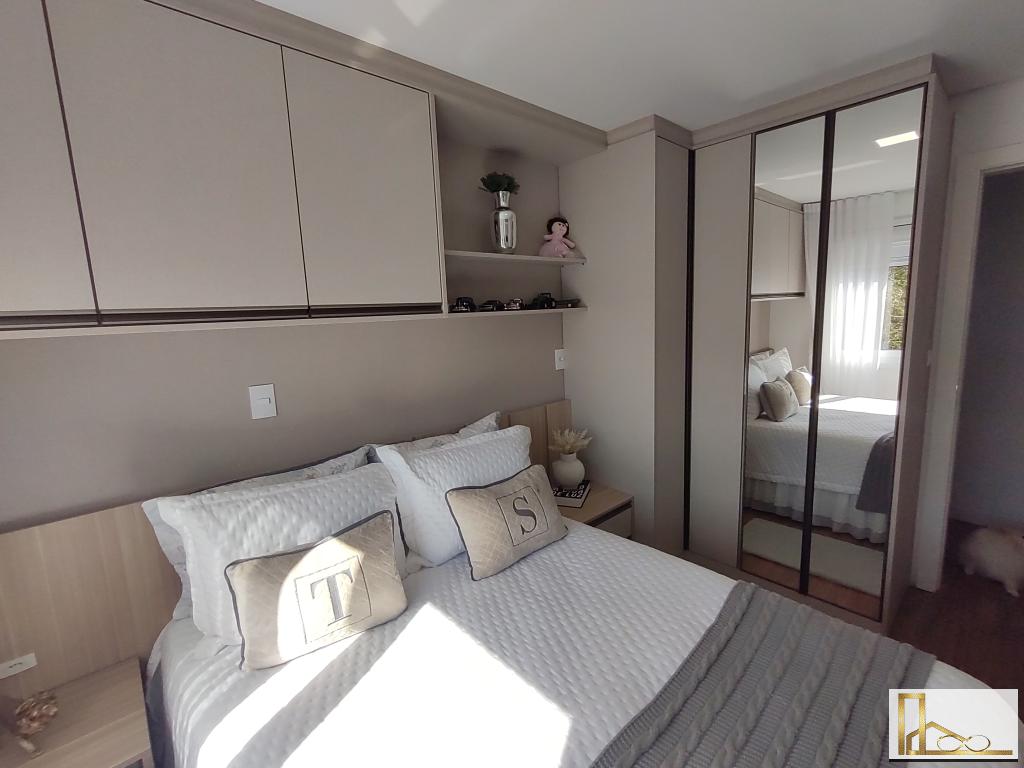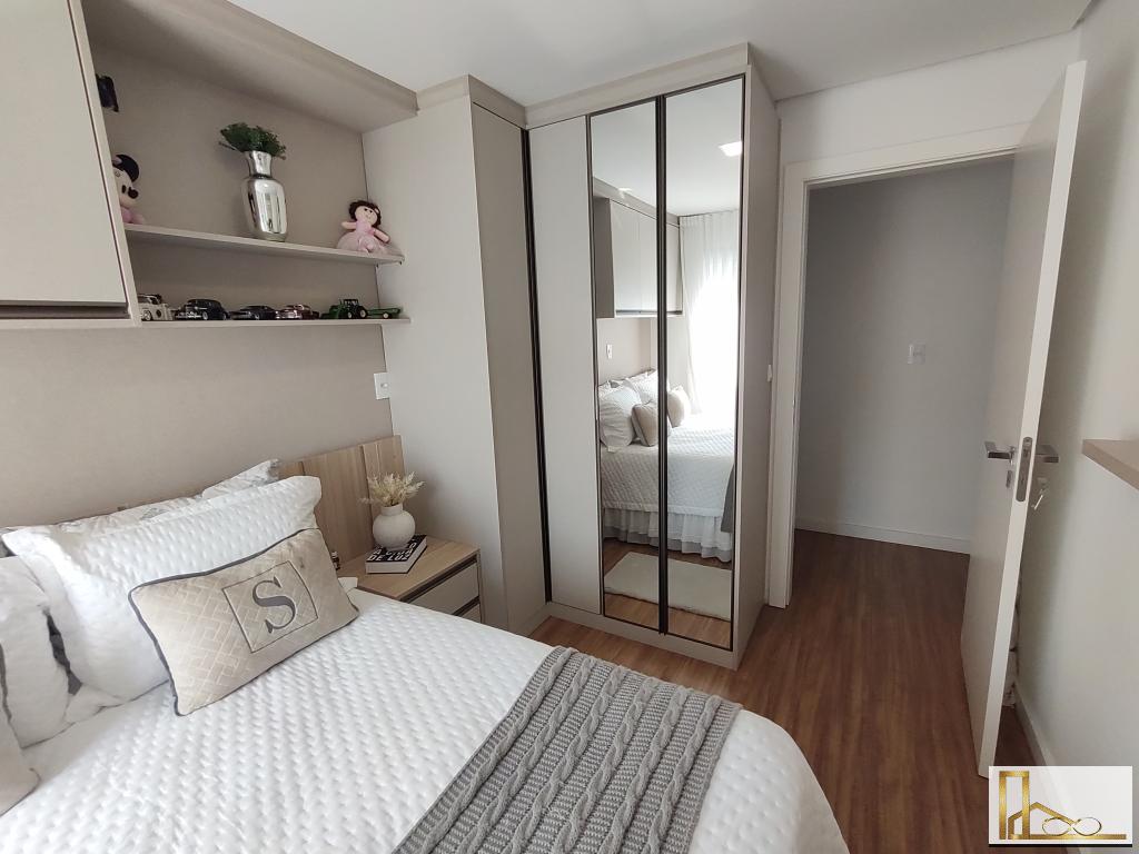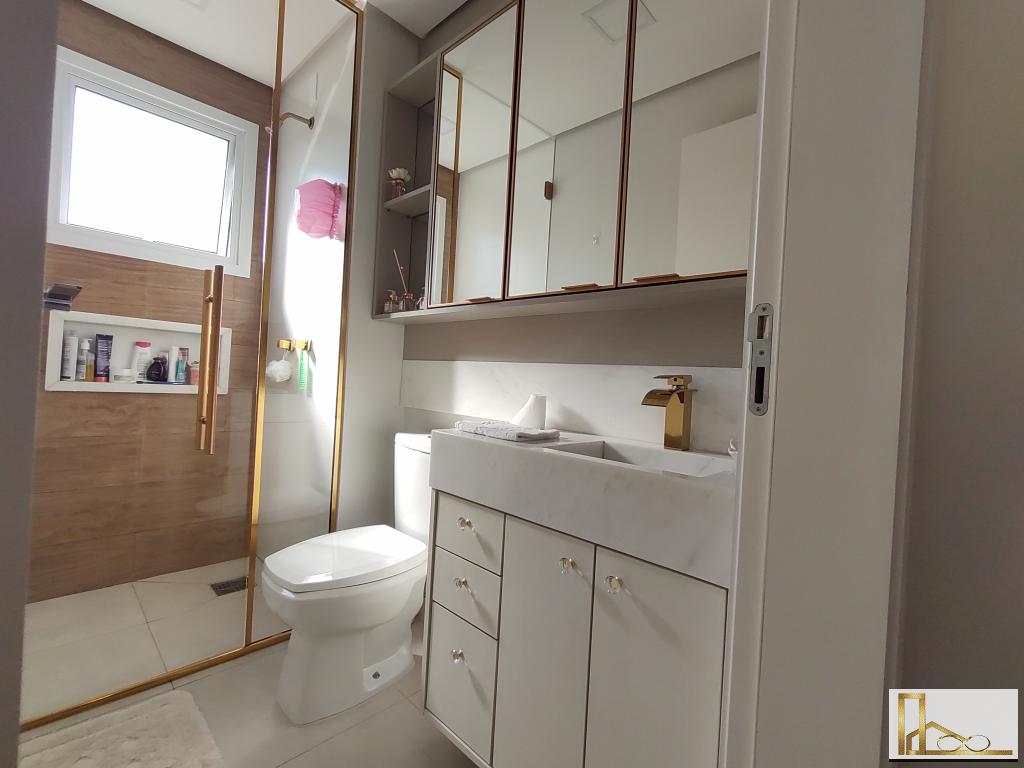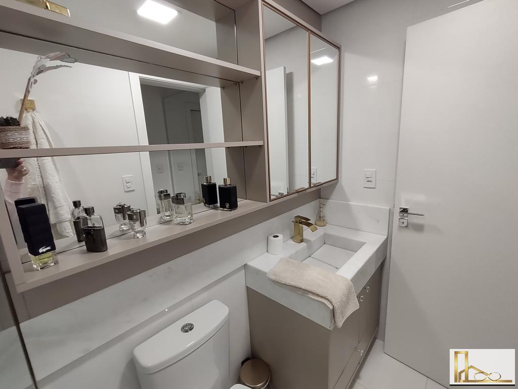 Apartamento com dois dormitórios, closet, dois banheiros, duas vagas de garagem.