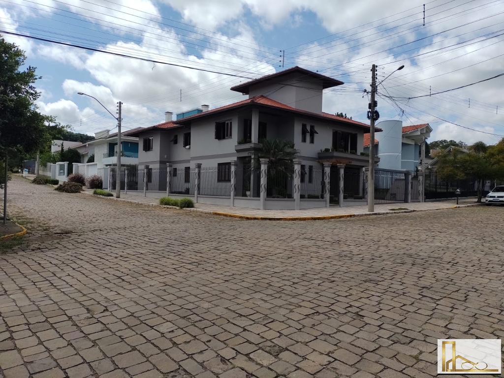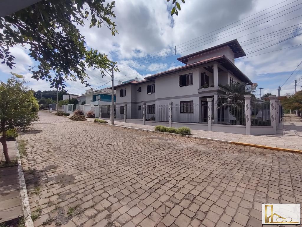 No piso inferior, três dormitórios, sendo um suíte, dois banheiros, cozinha, lavanderia e sala de estar. Garagem com churrasqueira e banheiro.