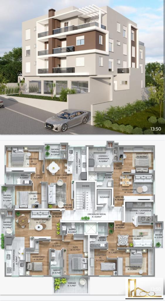 Dois dormitórios, banheiro, sala de estar, cozinha e área de serviço, sacadas e uma vaga de garagem.