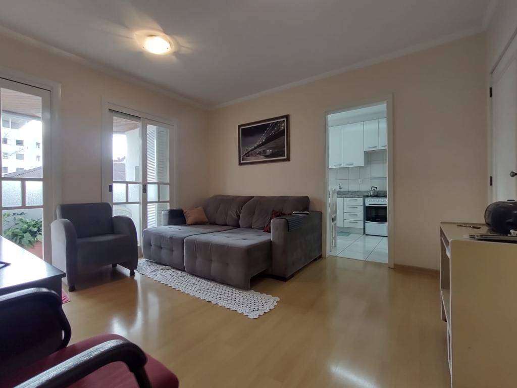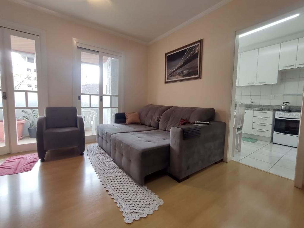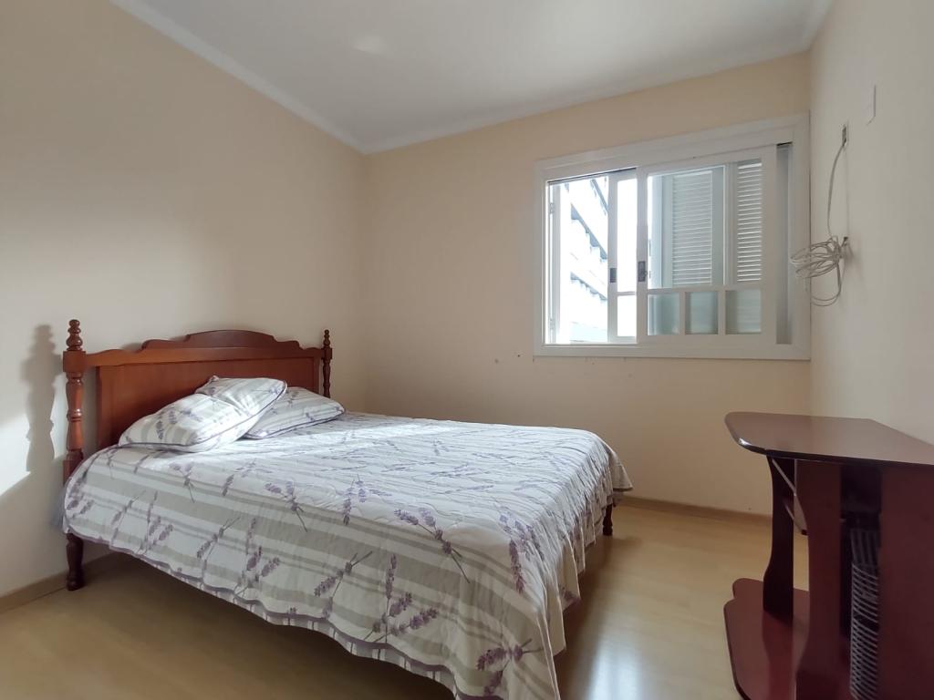 Dois dormitórios, sendo um deles suíte, dois banheiros, amplo terraço com churrasqueira, ideal para reunir a família e os amigos, duas vagas de garagem, prédio com elevador.